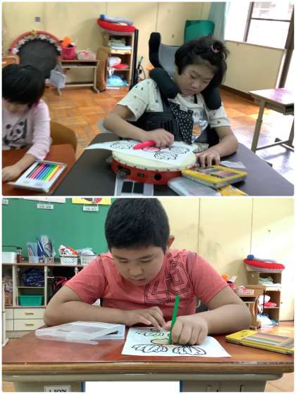 教室に戻ってからは野菜の色塗りをしました。それぞれ好きな色の鉛筆やペンを持って塗れましたね!