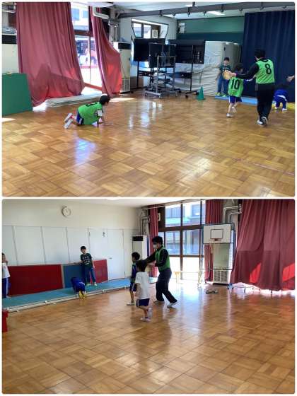 久しぶりに「ミニミニ運動会」をしました。新競技の「島鬼(しまおに)では、マットの島から島へ、鬼に捕まらないように走って逃げました。捕まったらビブスを着て鬼の仲間入り。逃げるのも追いかけるのも、どちらも大好きな2年生でした。