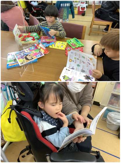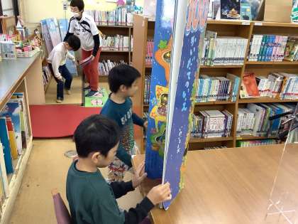 図書館でたくさんの絵本に触れています。「いもほり」の絵本も読みました。好きな本は見つかったかな?