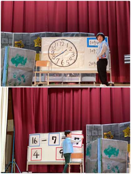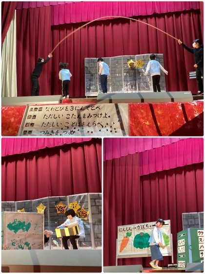 小学部3年生の学習発表会「いざ出動!東おたすけ隊」の様子です。