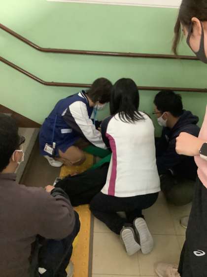 洛和会音羽病院の救命救急室より救急救命士の方をお迎えして、中学部と高等部で救急救命シミュレーションを行いました。