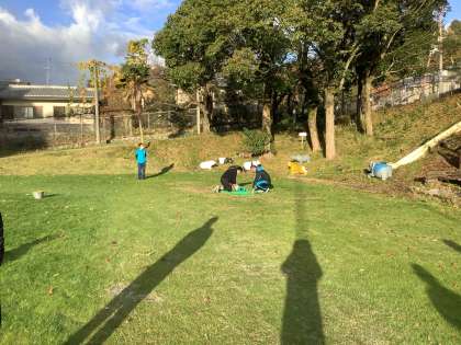 高等部はグランドで運動中に起こった想定で行いました。実際グランドに出て、心肺蘇生法などのシミュレーションも行いました。その後は、動画を観ながら話し合いを行い、講師の方からご助言をいただきました。