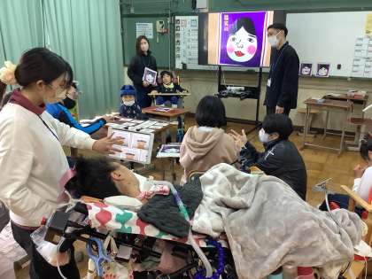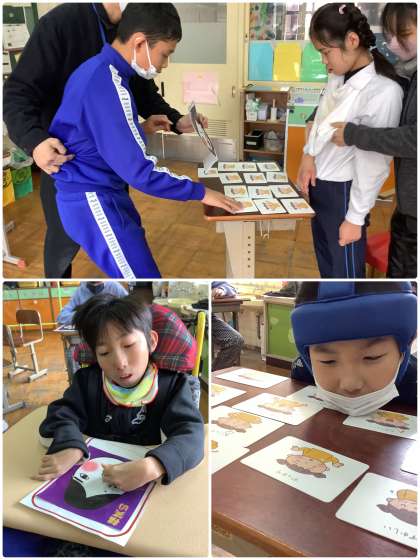 中学部1年学年ライフスタディで一足お先に福笑いを使った授業をしました。目を隠さずに各々が自由に顔のパーツを組み合わせて楽しい顔を作りました。完成した作品を見比べて、『どのように見えるか?』ということを話し合いました。同じ顔でも見え方に違いがあることをみんなで話し合いました。