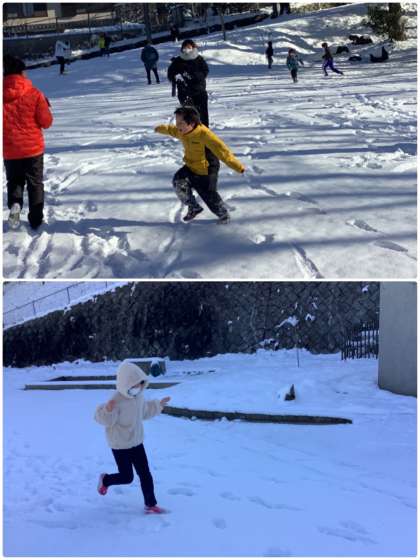 子どもたちは、寒さに負けず、元気に雪を楽しんでいました。