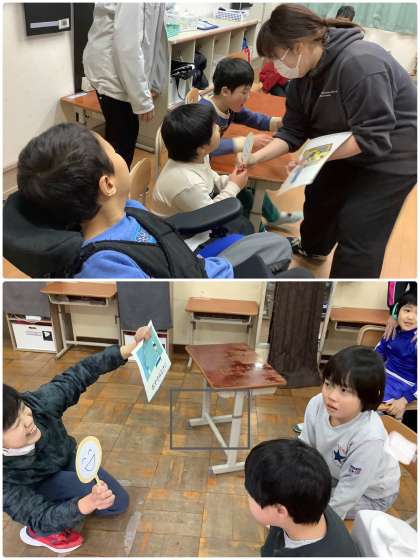 絵カードを選んだり、日常生活を再現する劇をしたりしながら「すてきなあいさつ」について学習しました。場面に合わせたいろいろな挨拶があることや、挨拶をすると「にっこり」心が温かくなることを学びました!
