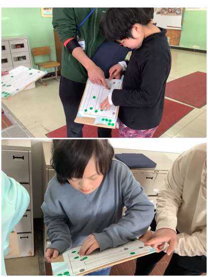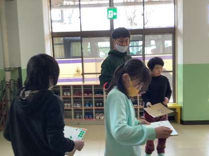 校内にある非常灯を探しました。校内を散策する時は、友だちと並んで歩きました。さすが6年生です。非常灯を見つけたら校内マップにシールを貼ります。毎日通っているのに気づいていなかったこともあり、「非常口を知るって大事なんだと思いました。」と感想が出ていました。その後は防災頭巾を被り校内を歩きました。災害が起きた時は、防災頭巾を被って頭を守りながら安全な場所へ避難します。みんな上手に歩くことができました。
