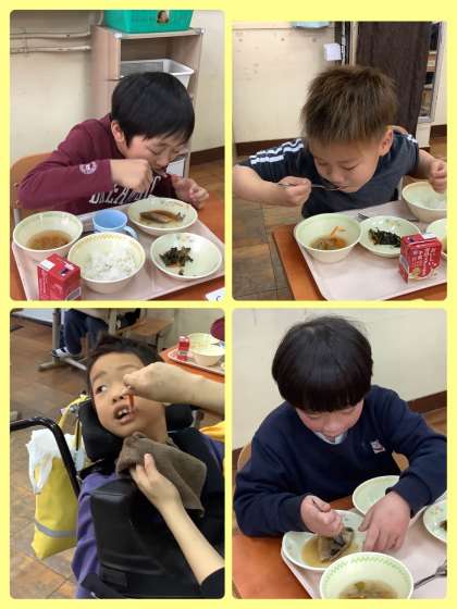 小学部の給食の様子です。みんな、おいしそうに食べていました。