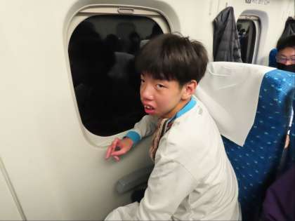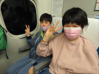 Aグループ新幹線内。到着までそれぞれの時間をゆったりと過ごしています。