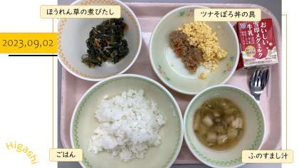 英語でまぐろ・かつおのことを『ツナ』といいます。今日のこんだてには、まぐろの身をそぼろにしたものを使っています。まぐろは体長3mの大きなものもいます。まぐろには体をつくるもとになる「たんぱく質」が多くふくまれています。