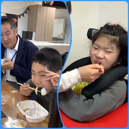 みんなで、お昼ごはんです。お弁当をおいしくいただきました。