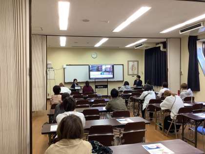 今回は教育内容についての話が中心となりました。中央分校が目指す学校づくりや「地域連携」で取り組む具体的なワークスタディの内容など教育課程のカリキュラムに合わせて紹介いたしました。施設紹介では、生徒会が作成した施設紹介の動画を見ながら工事中の様子・完成後のイメージ図を紹介しました。また、教室棟が完成した後の学校見学会に関する紹介も合わせて行いました。