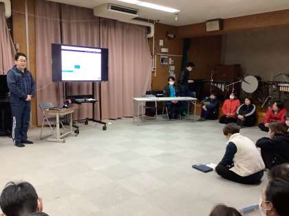 洛和会音羽病院の救命救急室より救急救命士の方をお迎えして、中学部で救急救命シミュレーションを行いました。中学部では、発作が起きた想定でシミュレーションを行いました。シミュレーションの後、振り返りを行いました。救急救命士の方には質問に答えていただいたり、止血処置やダイアップの使い方など教えていただいたりしました。