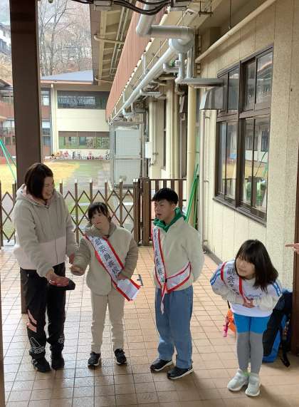 令和6年度の中学部生徒会本部役員の立候補者が、朝のあいさつ運動の時に選挙運動しました。2月14日の選挙に向けて、「〜に立候補する○○です」と大きな声で頑張っていました。