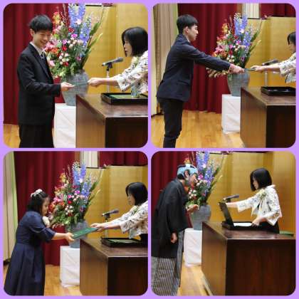 本日、令和5年度高等部卒業証書授与式を挙行し、卒業生が次のステージに巣立ちました。卒業証書をを受け取りに行く姿は、皆、逞しく凛々しいものでした。これからも東総合で見つけた「宝物」を胸に、前を向いてしっかりと歩いていってほしいです。
