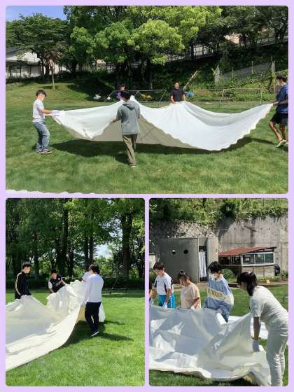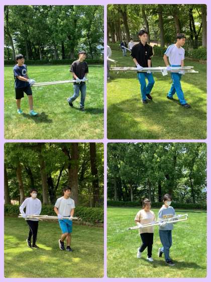 テントの骨組や天幕を友達と協力して運んでくれました。生徒らは、友達と声をかけあいながらてきぱきと動き、とても頼もしい姿を見せてくれました