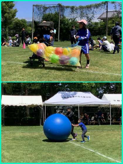 今日はグラウンドで小学部・中学部が一緒に体育祭の練習をしました。それぞれ協力しながら競技をしている様子もあり、みんないい表情をして取り組んでいました。