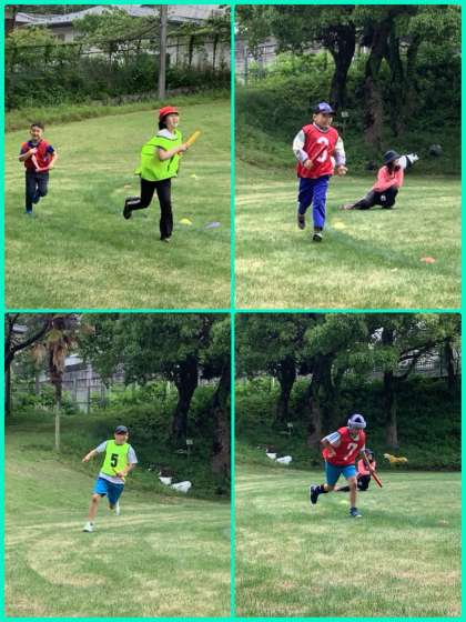 今日もグラウンドで小学部・中学部が一緒に体育祭の練習をしました。練習の回数も重ねてきており、やり方も覚えてきて楽しそうにそれぞれの競技に参加しています。