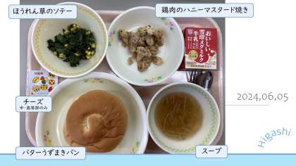 鶏肉のハニーマスタード焼きに使われている「ハニー」とは、はちみつのことです。はちみつは、ある昆虫が集めた花のみつのことです。花の種類によって、香りや色が少しずつちがっています。