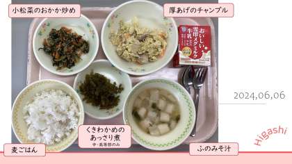 今日の給食は、厚あげを使っているので「厚あげのチャンプル」です。