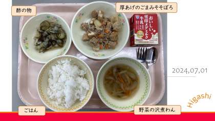 今日の「酢のもの」に入っています。きゅうりのパリパリした食感を楽しみましょう。