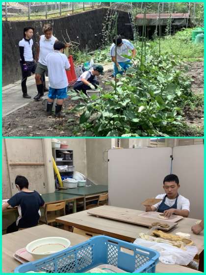 中学部で働くことに結びつく学習として「陶芸」「農園芸」「クラフト」「ライフ&ワーク」でワークスタディをしています。説明を聞いたり、やり方を見たりして、それぞれ考えながら集中して活動していました。