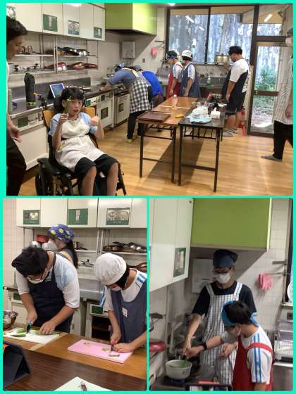 調理の手順や、材料に適した加熱調理のやり方を知るために、野菜を切ったり、ゆでたり、炒めたりして調理調理実習をしました。安全にできるよう、集中して取り組んでいました。