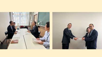総P連 佐々原 会長(西総合)から要望書をそれぞれ手渡された後、総P連 橋本 副会長(北総合)とともに、教育長宛の要望書については、京都市教育委員会の 宮前 生涯学習部長と 西村 学校地域協働推進担当課長に、市長宛の要望書については、障害保健福祉推進室の 遠藤 企画・社会参加推進課長と 渡部 企画係長にそれぞれお渡しし、限られた時間でしたが懇談が持たれました。