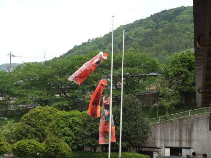 グラウンドでこいのぼりをあげたときには,時折吹く風にこいのぼりがたなびき,見ている子どもたちも大喜びでした。