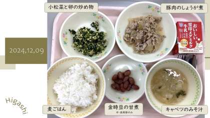 今日の「小松菜と卵の炒め物」も、いろいろなおいしさを味わってもらうための工夫をしています。