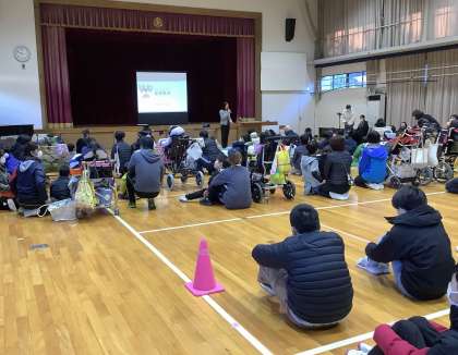 全校集会では、後期前半の様子をスライドで振り返り、まず一番に今日まで頑張ってきた自分をほめましょう!と伝えました。その後、12月の人権週間に触れ、各学部・学年で取り組んだ人権学習での学びを生かせるように、今年最期の登校日を、自分も身近な人も、みんなが心地よく過ごせるよう、自分にできることを心がけて過ごしましょうと話しました。自分が言われてうれしかった言葉や人を大切する言葉、表情については、子どもたちからたくさん発表がありました。「がんばったね。」「すごい。」「大好き。」「楽しかったね。」「うれしい。」「今日も一緒に乗り越えよう。」等、たくさんのうれしい言葉が発表され、子どもたちに良い表情が見られる、あたたかい全校集会となりました。