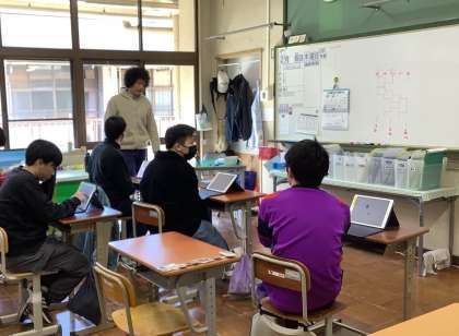 校外学習の事前学習を行っていました。行き先や行程を、ICT機器を使って自分たちで考えた内容と照らし合わせながら確認をしていました。