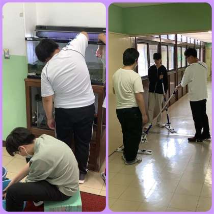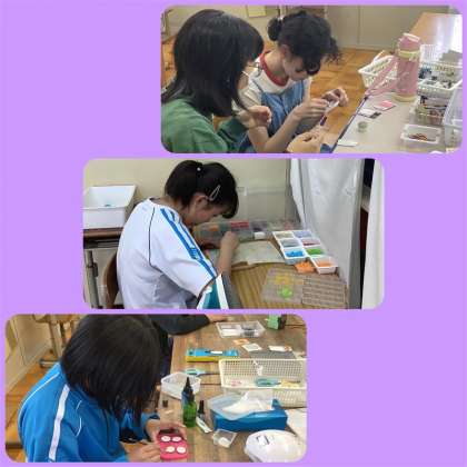 ワークスタディの様子です。それぞれの班で、3学年の生徒たちが様々な作業を通して学んでいます。一度、先生と一緒にやってみて、どの方法が効率よく作業できるのかを考えてみたり、安全に気をつけたりしながら取り組んでいました。
