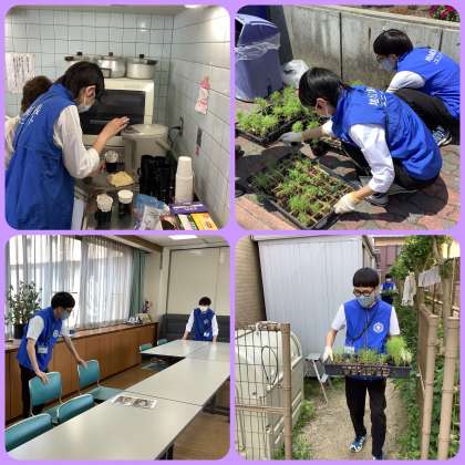 ワークスタディの時間に、定期的に地域の老人施設、児童館、社会福祉協議会に出向き、メンテナンスや軽作業、喫茶接遇やサロンスペースの準備等に取り組んでいます。施設の職員の方との挨拶や作業内容の確認、報告等の自分たちで行い、作業を進めています。