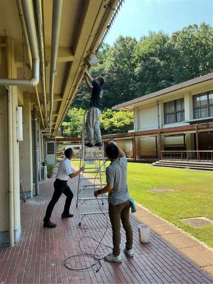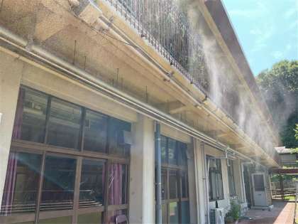 連日、猛暑が続き、気温が39度を超える日もあります。少しでも涼しい環境の中で学習や活動ができるように、体育館前の南庭にミストシャワーを設置しました。夏休み明けからの学習で活用していきたいと思います。