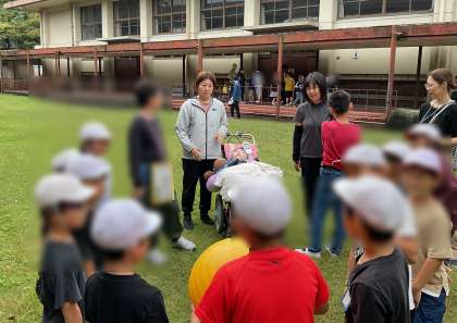 本校小学部の児童と大塚小学校2年生との学校間交流の様子です。いくつかのグループに分かれて校内探索ラリーを行いました。校内探索では、小学部の児童を先頭に大塚小学校の児童を体育館や図書館、生活学習棟、運動場、中庭、南庭に案内していました。各場所では、全員がクイズに答えることや円になりボールを全員に回すといったミッションをお互いのペースに合わせて取り組んでいました。大塚小学校の児童からは「学校広くていいなぁ。」、「生活学習棟で泊まってみたいなぁ。」といった感想が聞かれ、学校間交流を通して、お互いのことを知り、楽しみながら活動をすることができました。