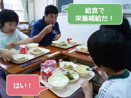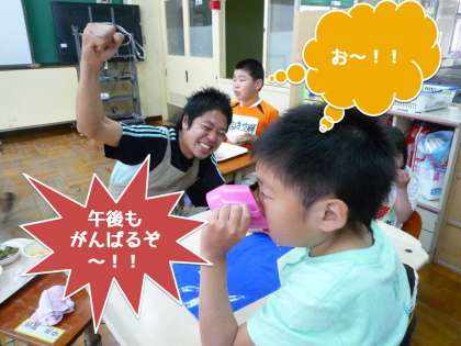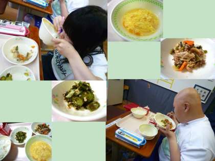 体育の部の午前が終わり,給食の時間です。頑張って活動した児童・生徒達は「お腹が空いたよ〜!」と言いながら,給食室へカートを取りにきていました。もりもり食べて午後からも気合いをいれて頑張りたいですね。