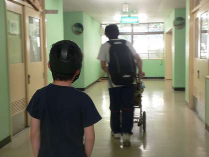 6月13日(木)午後小学部4年生の宿泊学習が始まりました。介護等体験のお兄さんにも手伝ってもらい、生活学習等へ移動しました。初めての学校での宿泊にみんなワクワク!