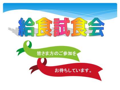 試食会の中では,総合支援学校の給食のことや,アレルギー,カロリー,特別食などについてもお話させていただきます。ぜひ多くの皆様方のご参加をお待ちしています。