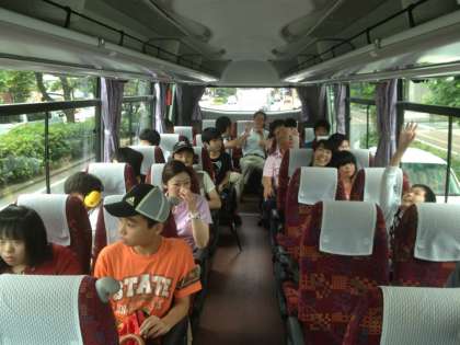 7月3日(水)中学部3年生 倉敷アイビースクエアへ向かうバスの中です。挨拶係の生徒が、これからお世話になるバスの添乗員さん、運転手さんに挨拶をしました。3日間どうぞよろしくお願いします。
