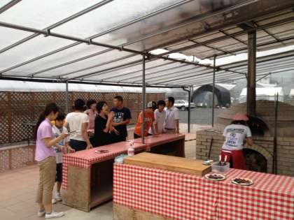7月3日(水)中学部3年生 本物の石窯で焼くブルーベリーピザ、祈るような気持ちで焼きあがりを待ちます。アツアツのピザ、とってもとっても美味しかったです。これから宿舎に向かいます。