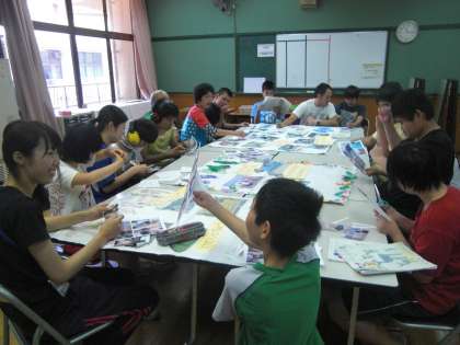 7月9日(火)中学部3年生が7月3日(水)〜5日(金)に行った修学旅行の事後学習の取組をしました。写真を見ながら活動を振り返ると楽しい思い出がたくさんよみがえり話題には事欠きません。担当の写真をどんどん貼っていき、完成後、修学旅行と同じ笑顔で記念撮影です。