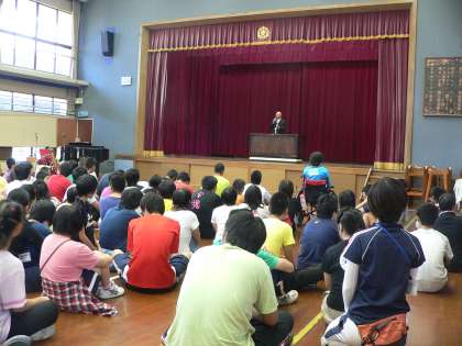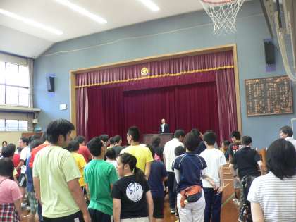 10月4日(金)前期終業式が体育館で行われ、元気に校歌を歌ったあと校長先生から二つのお話がありました。一つ目は、台風18号についてです。「山のふもとや川のそばでは雨による災害が大きくなります。自分の命を守ることや、その準備について普段から考えていきましょう。」二つ目は「前期に頑張ったことを振り返り、4月から取り組んできた挨拶・言葉使い・身だしなみに 後期では整理・整頓にも取り組み、友だちと協力すること、人とのコミュニケーションの力をつけていきましょう」とのお話をしていただきました。今日は、ご家庭に通知表を持って帰ります。頑張ったところをたくさんほめてもらいたいと思います。