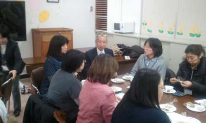2月12日(水)地域交流会を開催しました。京都市PTA連絡協議会会長富樫一貴様,京都おやじの会副会長小倉誠一様,総合育成支援課長大黒喜裕様等4名の来賓をお迎えし,総勢44名の参加をいただきました。本校PTA会長今井志保里さんによる「子育ては自分育て」に心を和ませたり,共感したり。グループトークでは各グループで話が盛り上がり,あっという間に時間が過ぎていきました。高等部生徒によるコーヒーサービスはいかがでしたか?挨拶やコミュニケーション,規範意識,おもてなしの心を学ぶ大事な実践学習でもあります。感想アンケートも多数いただきました。ありがとうございました。「来年も是非開いてください」とのお声をいただきました。感謝申し上げます。これからも地域とともに歩んでまいりたいと思います。ご参加いただいた皆様,本当にありがとうございました。