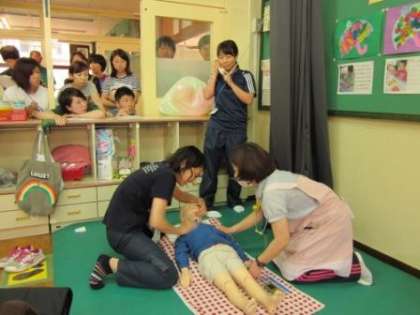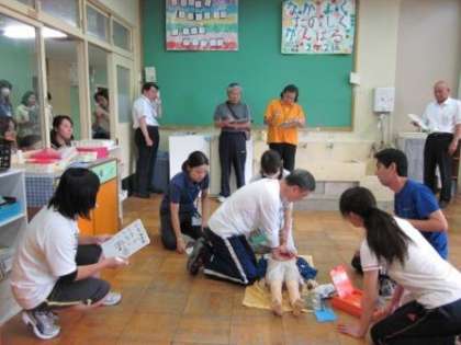 消防署の方からは,「小児の場合の胸骨圧迫は力の加減に気をつける」「必ず最初に呼吸の有無の確認し気道を確保する」とアドバイスがありました。日ごろから心肺蘇生の手技について手順を思い描いておくことが大切だと改めて感じました。