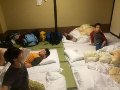 修学旅行2日目の行程が終わり,寝る前の準備もすませ,寝る前のひと時です。今日はみんな11時頃に寝ることができました。