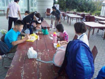 お家の方手作りの美味しいお弁当です。みんなパクパク食べています。