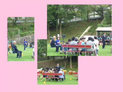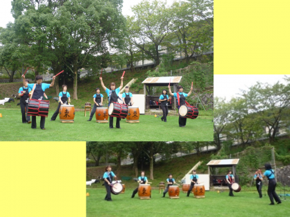 オープニングに続いてNPO法人大塚ふれあい太鼓「雷」さんによる恒例の和太鼓演奏がありました。芝生のグランドに太鼓の音色が響き渡りました。
