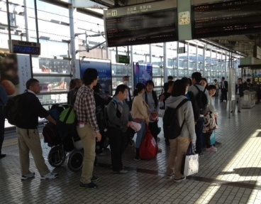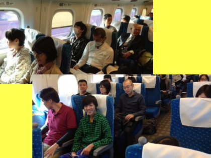 ただいま新幹線で品川駅に向かっています。新幹線に乗り,ホッとしている生徒,わくわくしている生徒いろいろです。この後,新幹線の中で早めの昼食(お弁当)をいただきます。品川駅到着後は,観光バスに乗り,お台場へ移動します。