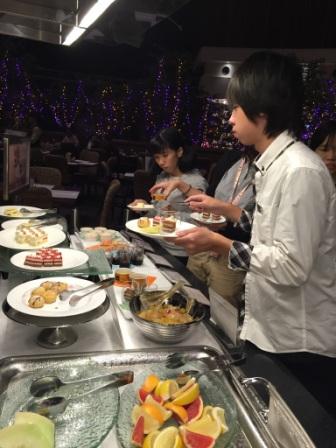 お台場での見学やスカイツリーから景色など今日の楽しい思い出を語りながらの豪華ダイニングでの豪華な夕食でした。