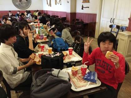 ハンバーガーのおいしいお店にて,昼食休憩中です。